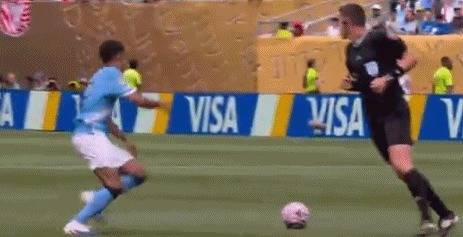 在1次五五开的争抢球权经过中,曼城小将刘易斯放铲,维达德9号穆巴里克也试图铲球抢到球权。20岁的刘易斯刹不住车,躯壳向前滑行,右脚的鞋钉亮起,径直踹到穆巴里克的脸上!