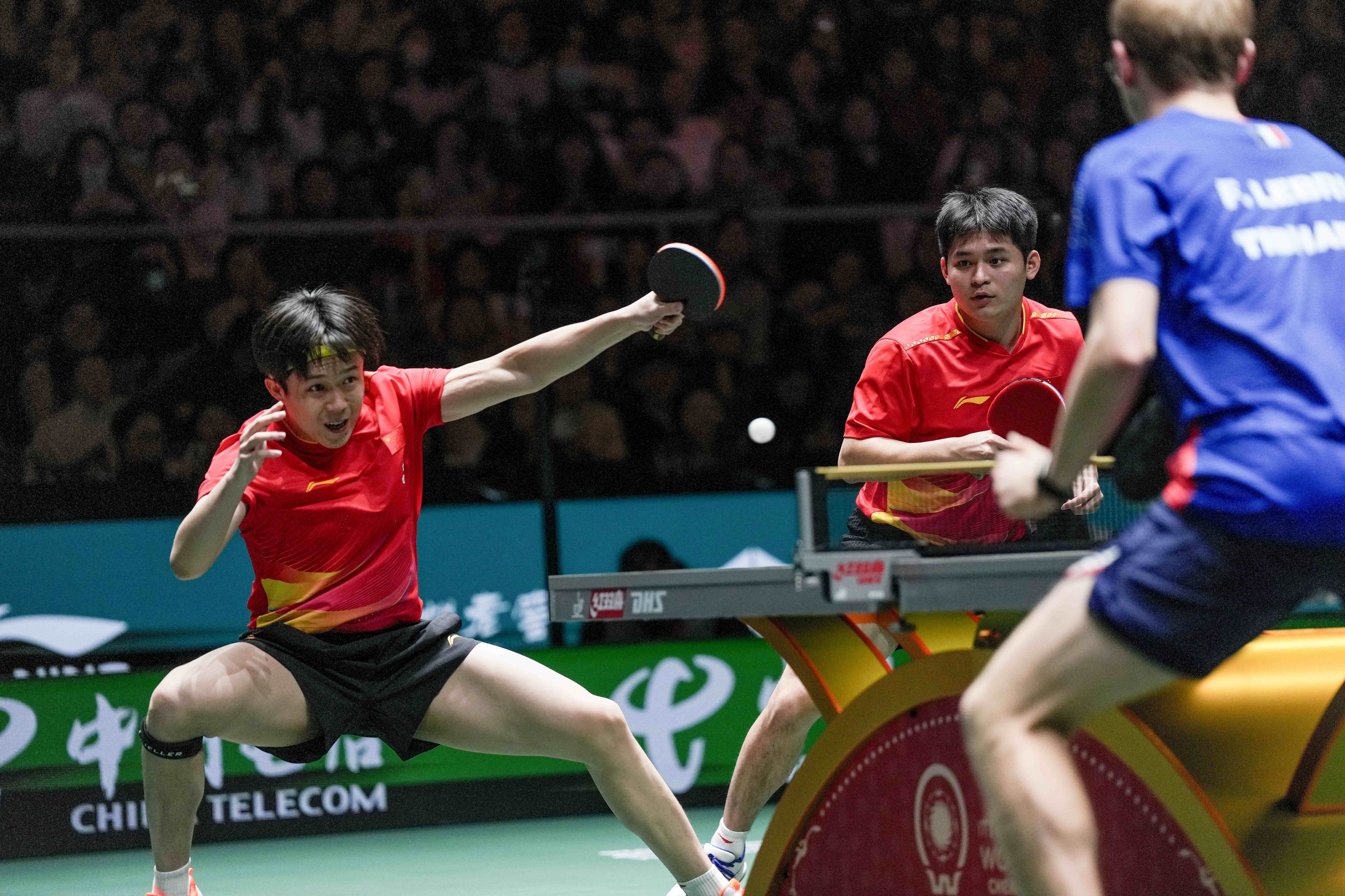 迎战实力不俗的法国队时,中国队混双组合王楚钦/孙颖莎的敌手是艾利克斯·勒布伦(大勒布伦)/袁嘉楠,两边比分瓜代高涨,王楚钦收拢袁嘉楠回球质地不高的裂缝,鸠合纰谬到手,最终中国队连下三城。